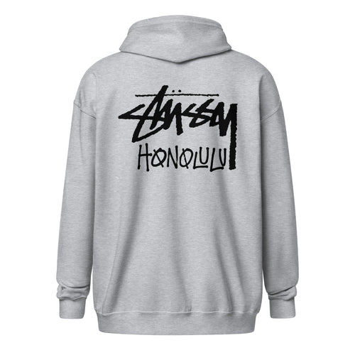 “Stussy Honolulu Fleece Zip-Up Hoodie in Grey –